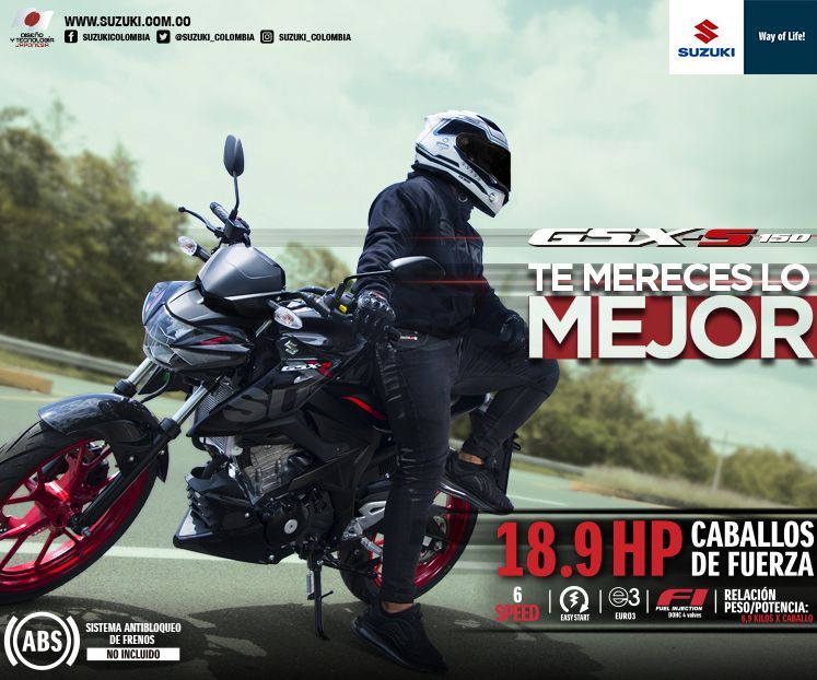 Suzuki Motor de Colombia S.A. se reserva los derechos a cambios sin previo aviso, en equipos, especificaciones, colores, materiales, y otros; para aplicaciones en condiciones locales. Cada modelo podría ser descontinuado sin previo aviso. Por favor consulte con su distribuidor local para detalles de algunos de esos cambios.